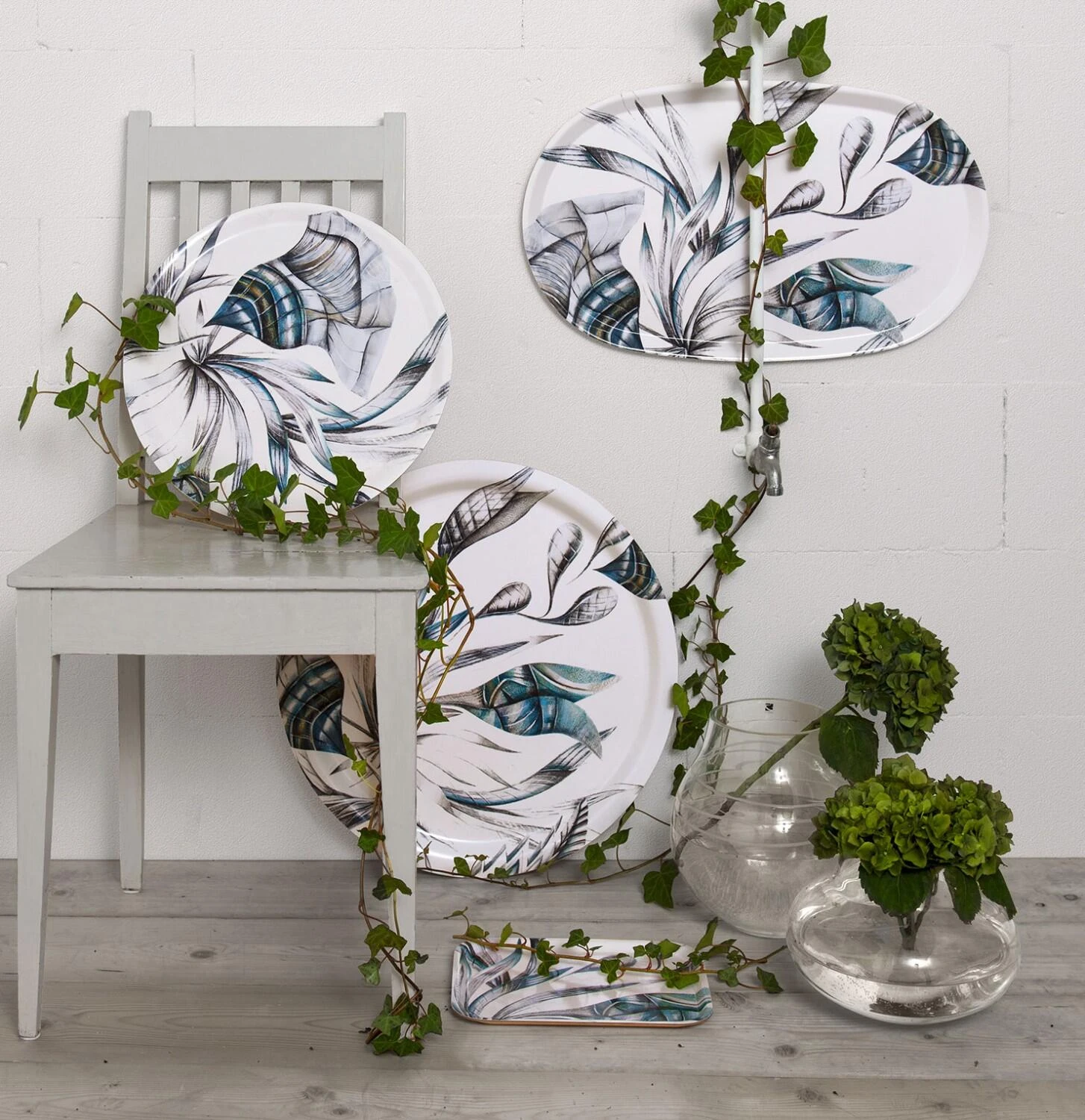Die botanisch inspirierten Designs der dänischen Künstlerin fügen sich dezent und natürlich in jedes Ambiente. Die Botanical Kollektion war ursprünglich eine große Collage aus mehreren handgemalten kleineren Elementen, die zu einem großen Detailmuster kombiniert wurden.