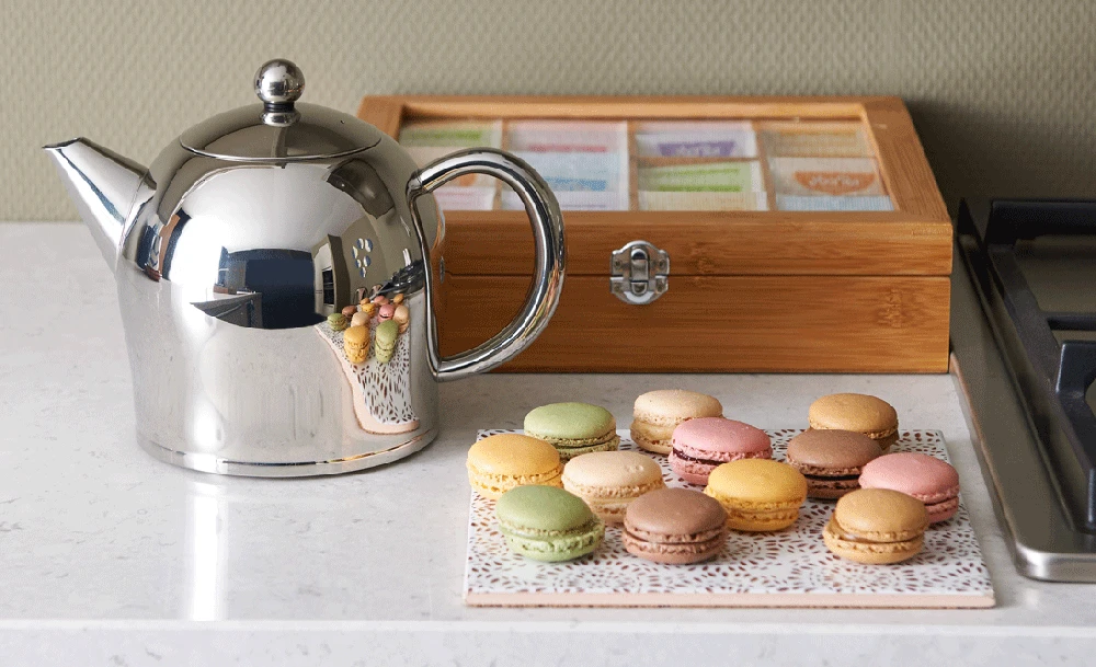 Modern, elegant und praktisch im Gebrauch. Was will man mehr von einer Teekanne? Die Teekanne Minuet Santhee in seiner modern-eleganten Form ist spülmaschinengeeignet und hat eine doppelwandig isolierende Konstruktion aus hochwertigem hochglanzpolierten Edelstahl. Der Tee bleibt dadurch besonders lange heiß und geschmackvoll. Die Spezialform der Tülle und der ergonomische Beschlag ermöglichen ein hervorragendes Einschenken. Die Beschläge werden allenfalls handwarm. Zudem bürgen die verwendeten hochwertigen Materialien für eine lange Lebensdauer.