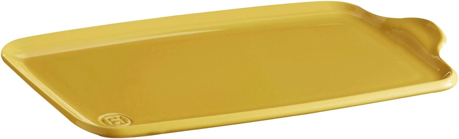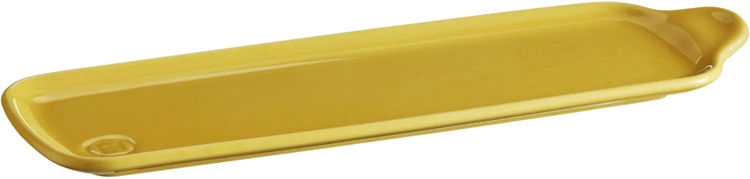 Emile Henry Aperitivo Snackplatte in Provence. Stilvolle Servierplatte aus Keramik in sattem Gelb. Zum Anrichten von Snacks, Appetizern und kleinen Häppchen direkt aus dem Ofen. Auch als Tablett oder Dekorationsplatte nutzbar.