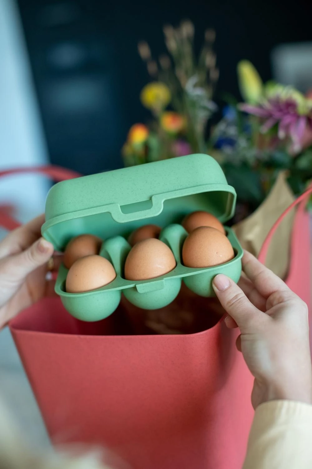 koziol Eierbox in grün – Die Box ist in 2 Größen erhältlich und transportiert bis zu 6 bzw. 10 Eier sicher nach Hause.