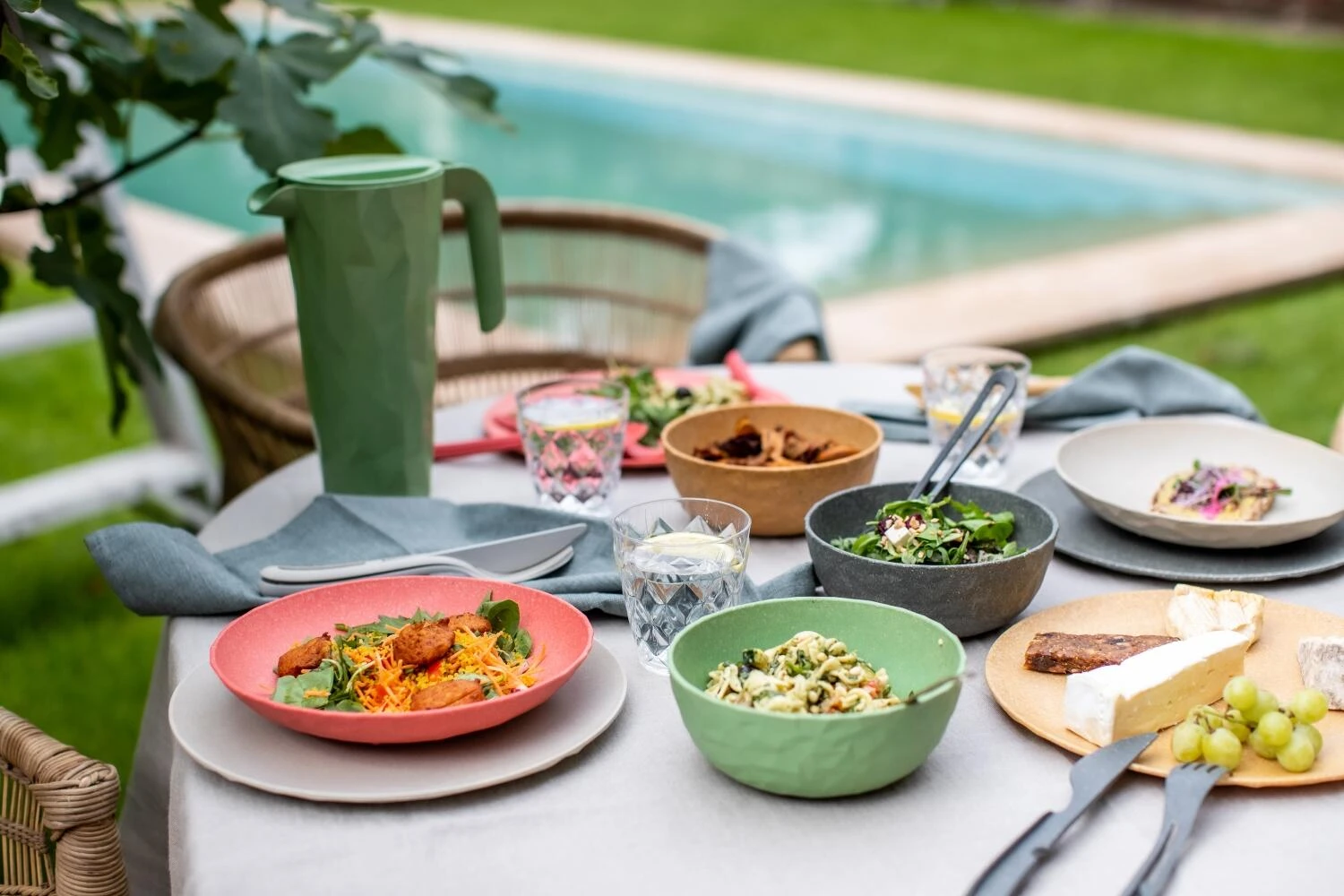 Die facettierten Teller sind wie eine frische Sommerbrise beim Outdoor-Lunch oder Terrassen-Dinner und halten auch turbulenten Feiern ohne jeden Scherbenhaufen stand. Ihre solide Materialität und die modernen Farben vermitteln stets das gute Gefühl eines schön gedeckten Tisches und bleiben dank ihrer schweren Qualität selbst bei einem kräftigen Windstoß stets standfest.