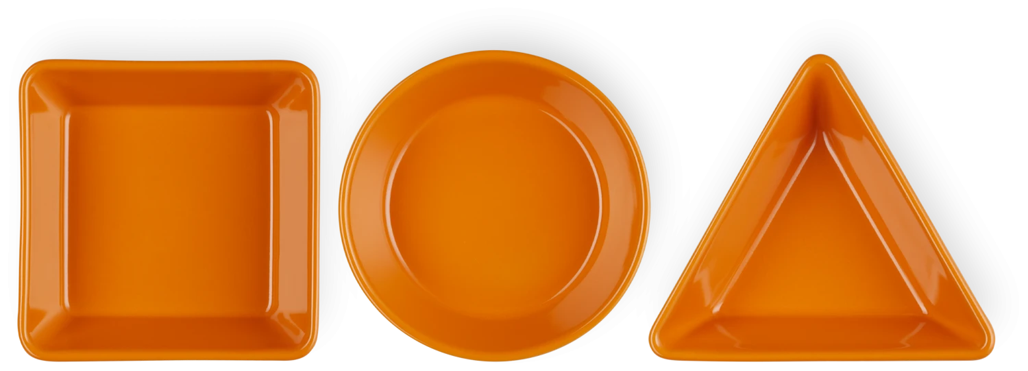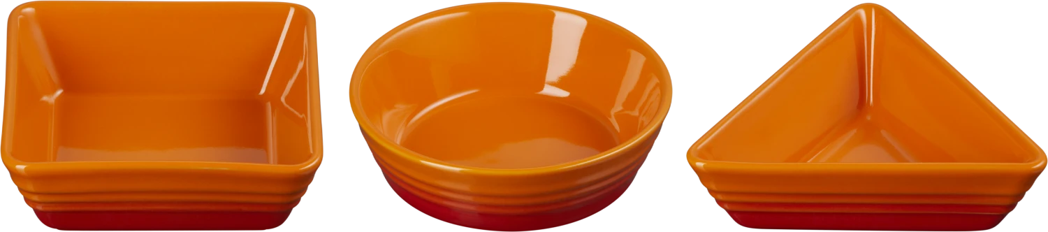 Le Creuset Tapasschälchen 3er Set in ofenrot. Tapas-Set in drei verschiedenen Formen für die Zubereitung und zum Servieren von kleinen Speisen.