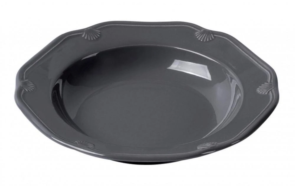 Pillivuyt Suppenteller Eclectique Compostelle in nebelgrau. Die Serie Eclectique wurde im 19. Jahrhundert entwickelt und präsentiert sich in weiß und eleganten Grautönen, die in Kombination miteinander besonders gut zur Geltung kommen.