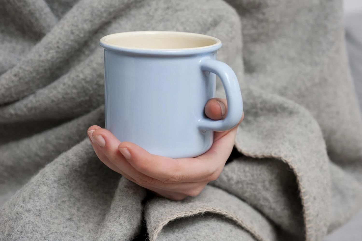 Riess Becher aus Emaille in pastell-blau. Trinkbecher mit Griff und Bördelrand aus Emaille, ideal für Tee, Kaffee und andere Heiß- oder Kaltgetränke. Warme Getränke können direkt in der Tasse auf dem Herd erwärmt werden.