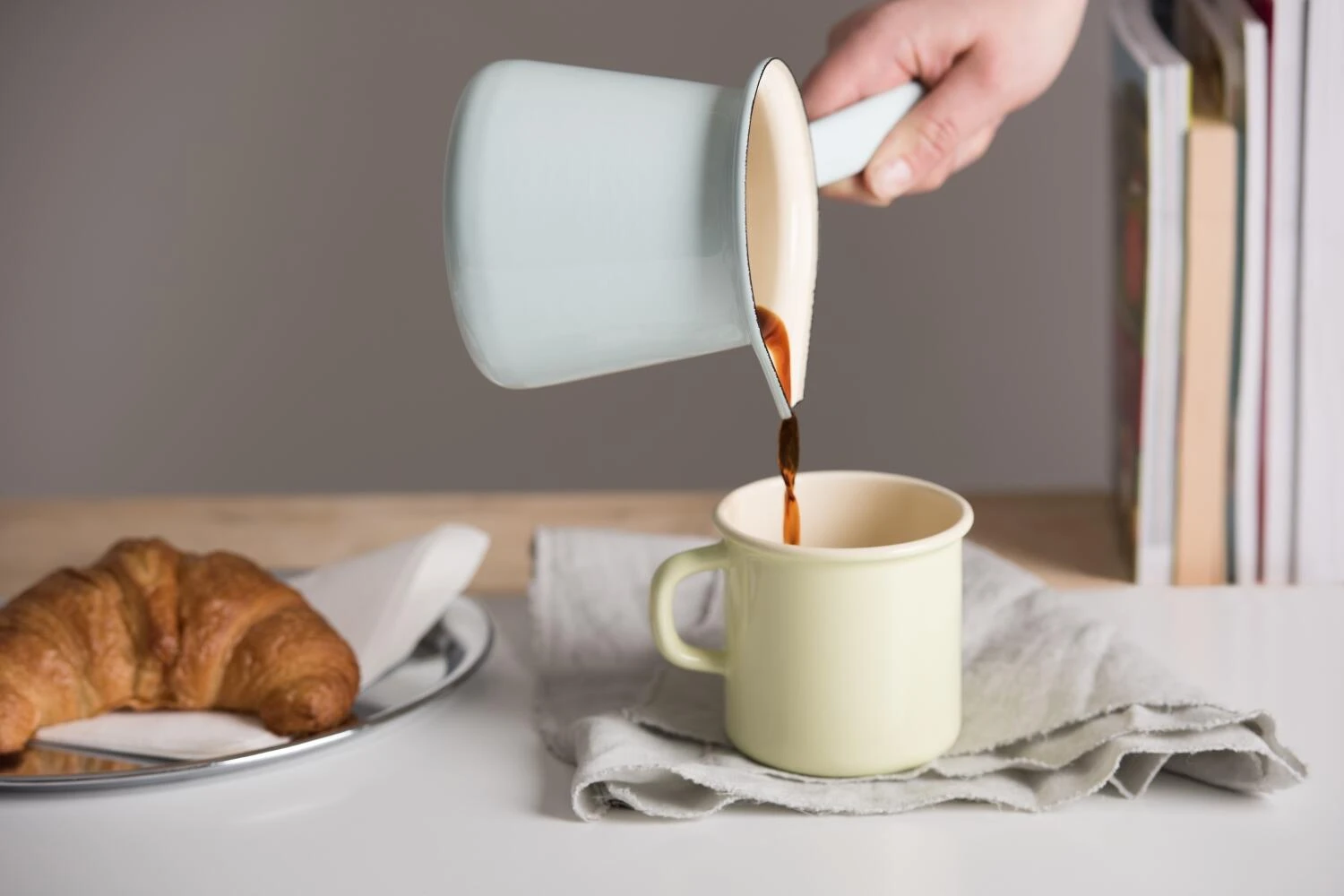 Der Emaille-Becher von Riess kann auf allen Herdarten (inkl. Induktion) sowie über offenem Feuer verwendet werden. Der Eisenkern der Emaille sorgt für eine schnelle und gleichmäßige Wärmeleitung. Die glatte, porenlose Oberfläche aus Glas ist robust, aromaneutral, bakterienhemmend und leicht zu reinigen.