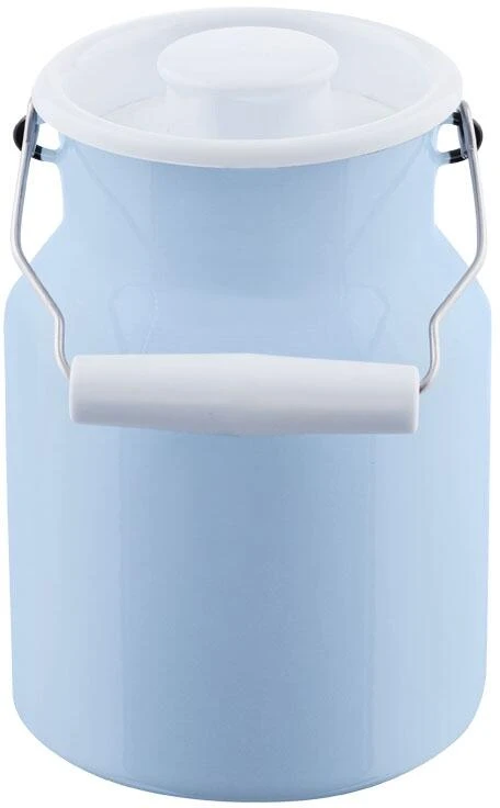 Riess Milchkanne mit Deckel aus Emaille in pastell-blau. Die Kanne im nostalgischen Design ist ideal für Milch, Saft und Wasser, eignet sich aber auch als Aufbewahrung von Küchenhelfern oder sogar als Blumenvase.