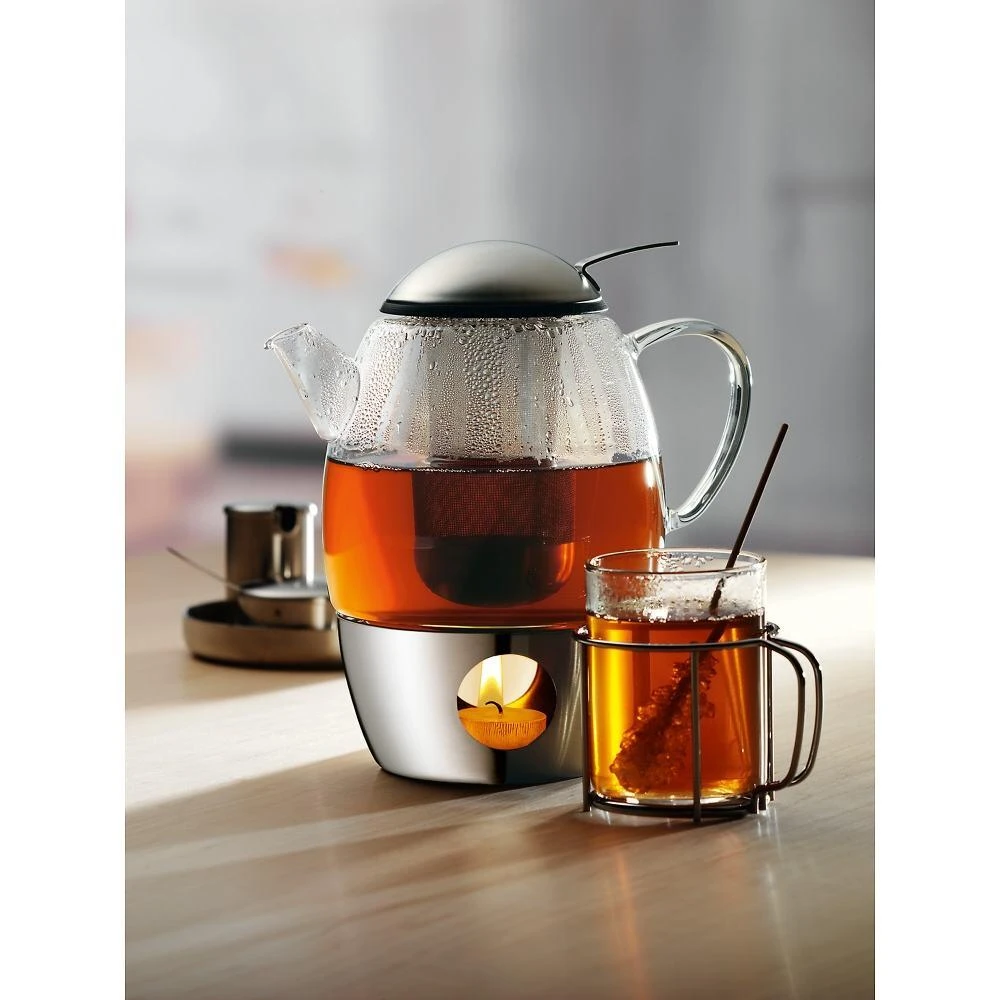 Das WMF SmarTea-Set besteht aus einem transparenten, klaren Glaskörper. Dieser Glaskörper sitzt auf einem Sockel aus Edelstahl mit einer Öffnung für ein Teelicht, das zum Warmhalten des Tee dient. Das abnehmbare Teesieb ist aus hochwertigem Edelstahl hergestellt und wird einer Gummidichtung beigefügt, die als Siegel dient. Der Deckel ist ebenso aus rostfreiem Stahl. Dieser SmarTea-Satz unterstreicht die hohe Qualität und Funktionalitätsnormen von WMF.