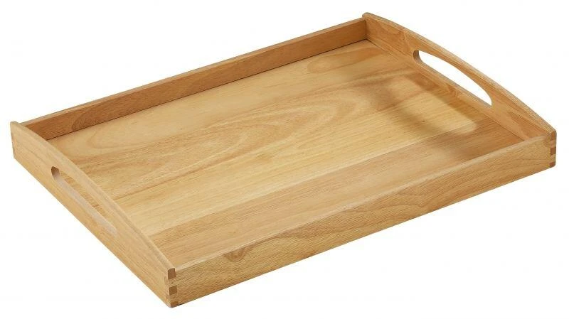 Tablett aus Gummibaum. Die Tabletts aus Gummibaumholz zeichnen sich durch die hohe Härte und Belastbarkeit aus.